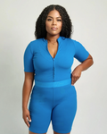 Cut in our Soft Sculpt Rib for a smooth, flexible fit that hugs and flatters every curve. This two-way zipper top is your go-to piece for endless styling: unzip from the top for a subtle neckline or from the bottom for a playful, sexy cropped look. Dress it up for nights out with the pencil skirt or keep it casual with leggings or biker shorts for relaxed days. Designed to move with you and make every outfit feel intentional, this is the piece you'll reach for again and again.