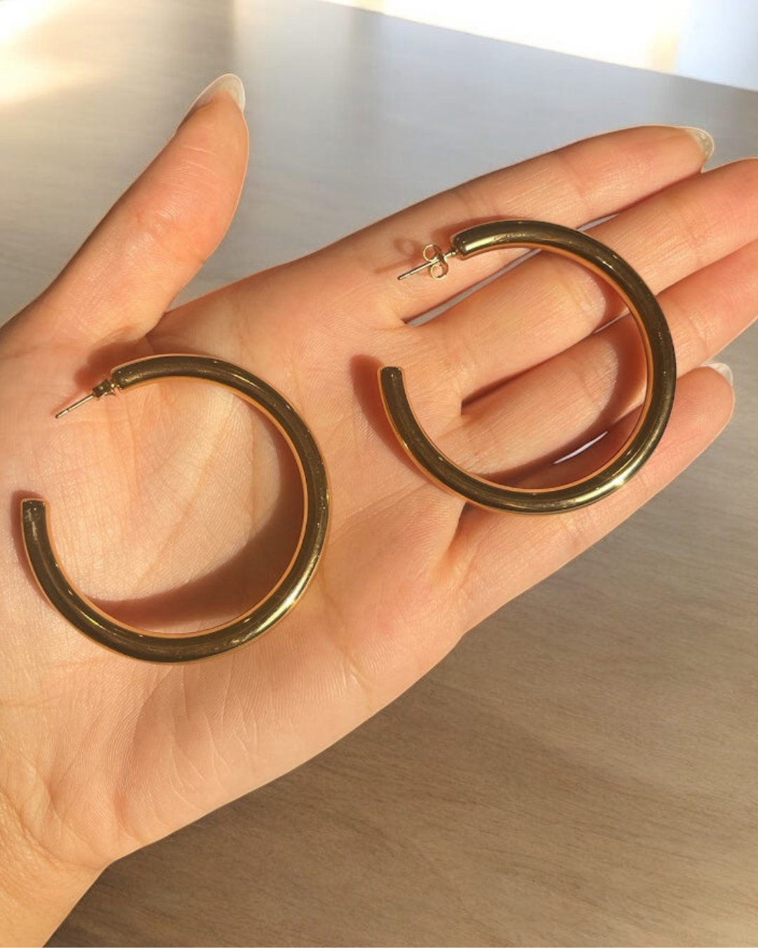 - 50mm Classic Thick Hoop Earrings in Gold for a bold, sculptural finish