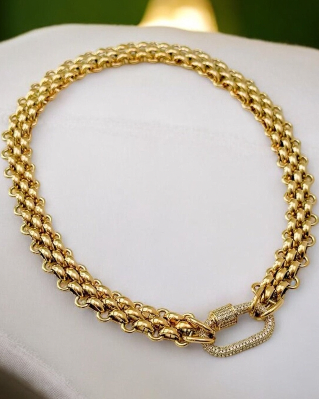 - Braided Chain Choker Necklace in Gold with a gold clasp for a sleek, structured touch